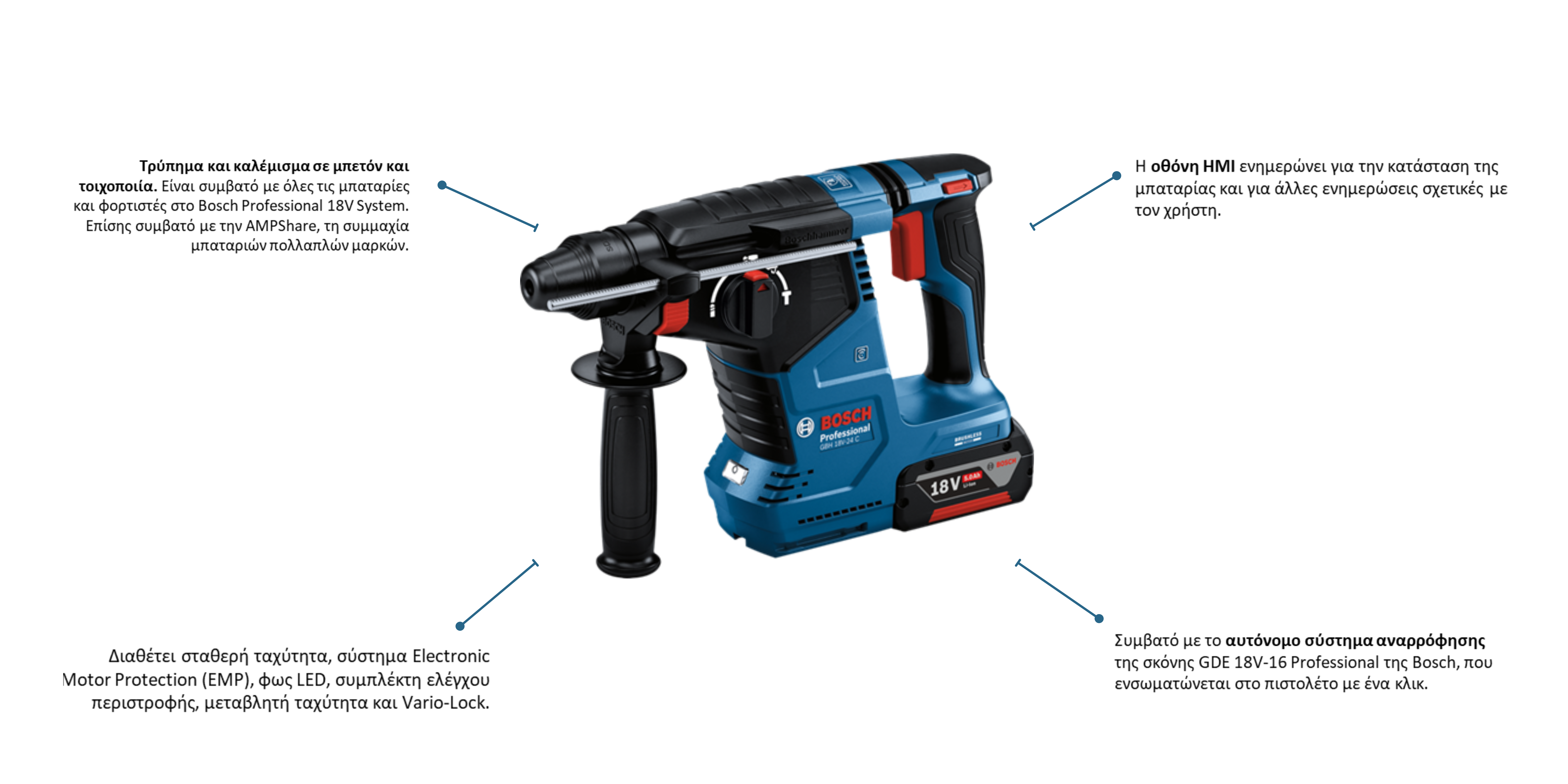 ΠΙΣΤΟΛΕΤΟ ΠΕΡΙΣΤΡΟΦΙΚΟ GBH 18V-24 C ΜΠΑΤΑΡΙΑΣ 18V ΜΕ 2 ΜΠΑΤΑΡΙΕΣ ΚΑΙ ΦΟΡΤΙΣΤΗ BOSCH
