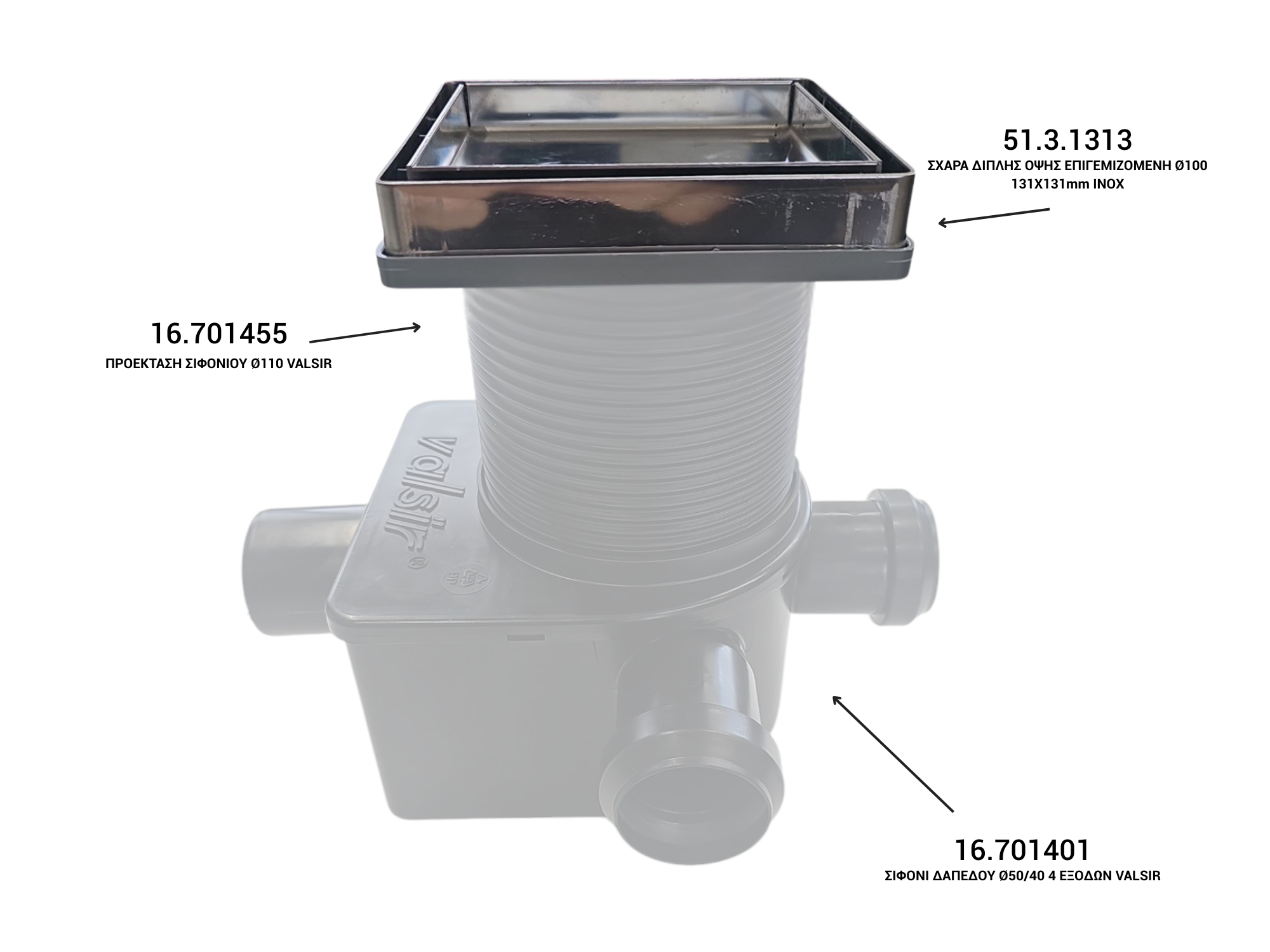 ΣΧΑΡΑ ΔΙΠΛΗΣ ΟΨΗΣ ΕΠΙΓΕΜΙΖΟΜΕΝΗ Ø100 131Χ131mm ΙΝΟΧ