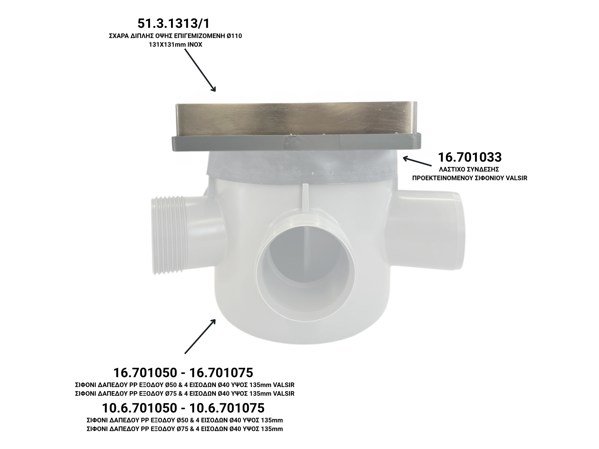 ΣΧΑΡΑ ΔΙΠΛΗΣ ΟΨΗΣ ΕΠΙΓΕΜΙΖΟΜΕΝΗ Ø110 131Χ131mm ΙΝΟΧ