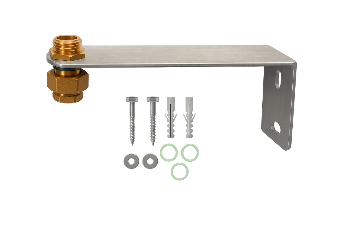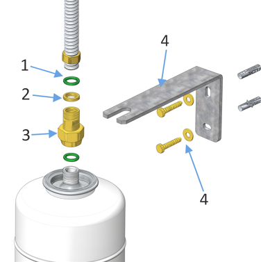 Η γωνία στήριξης του δοχείου διαστολής είναι από γαλβανισμένο χάλυβα πάχους 5mm μεδυνατότητα συγκράτησης δοχείων έως 50l με σύνδεση ¾ και διάμετρο ≤42cm.